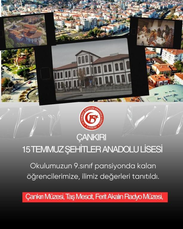 Pansiyonumuzda kalan 9. sınıf öğrencilerimizle Taş Mescit, Çankırı Müzesi ve Ferit Akalın Radyo Müzesi’ni gezerek şehrimizin zengin kültürel mirasını ve tarihi dokusunu keşfettik.Haber